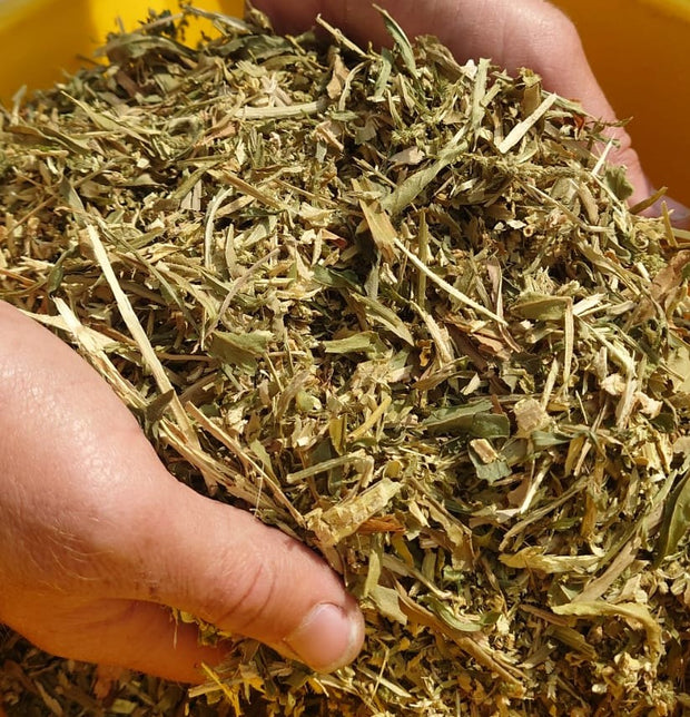 Hand-harvested, shredded, and dried