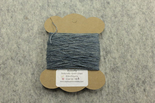 Naturally dyed, using Tannins, Indigo, Madder, Cochineal and many more, these linen threads have been carefully hand dyed, using sustainable and professional methods to create long lasting colours. A lot of love, time and patience has gone into these little jewels. Hand wound from cones into skeins, mordanted, dyed, dried and wound back by hand on enchanting little bobbin cards, these linen threads are very special indeed.