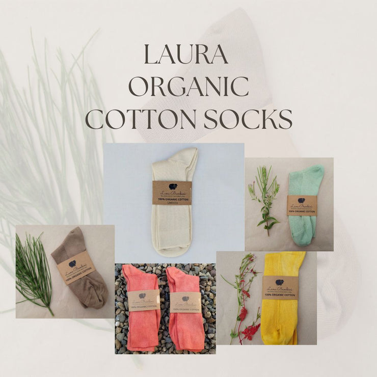 Diese wunderbar weichen und leichten Baumwollsocken bestehen aus Bio-Baumwolle, die ohne Chemikalien angebaut wird. Wunderschön und einfach. Natürlich gefärbt.