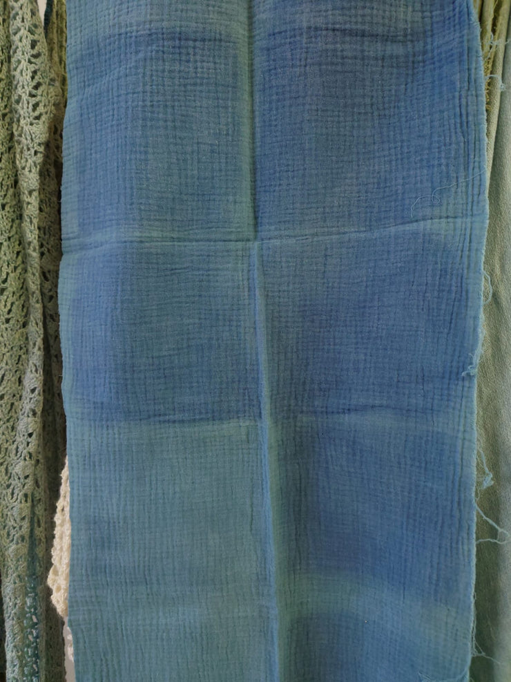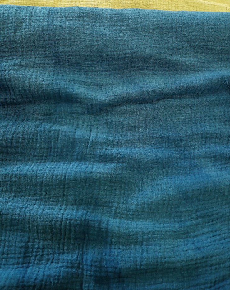 These are single remnants from our indigo‑dyed double‑layer bubble gauze. The fabric is sound, but the colour is uneven, streaked or blotched—perfect for makers who enjoy visible texture or need yardage for muslins, patchwork and one‑of‑a‑kind garments.