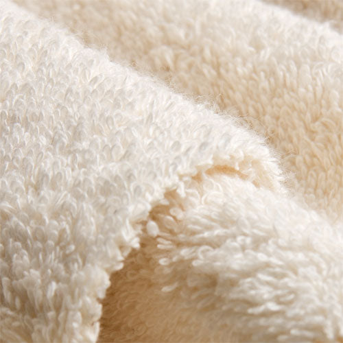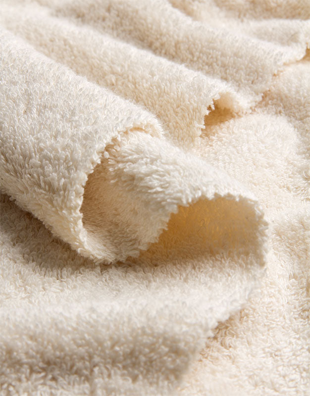 This thick, soft, and absorbent terry fabric is made from 100% GOTS-certified organic cotton and is completely undyed and unbleached. Its naturally off-white tone and gentle texture make it ideal for everything from body care items to sustainable homewares.